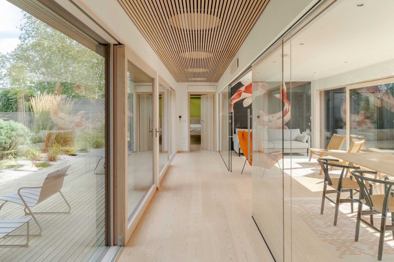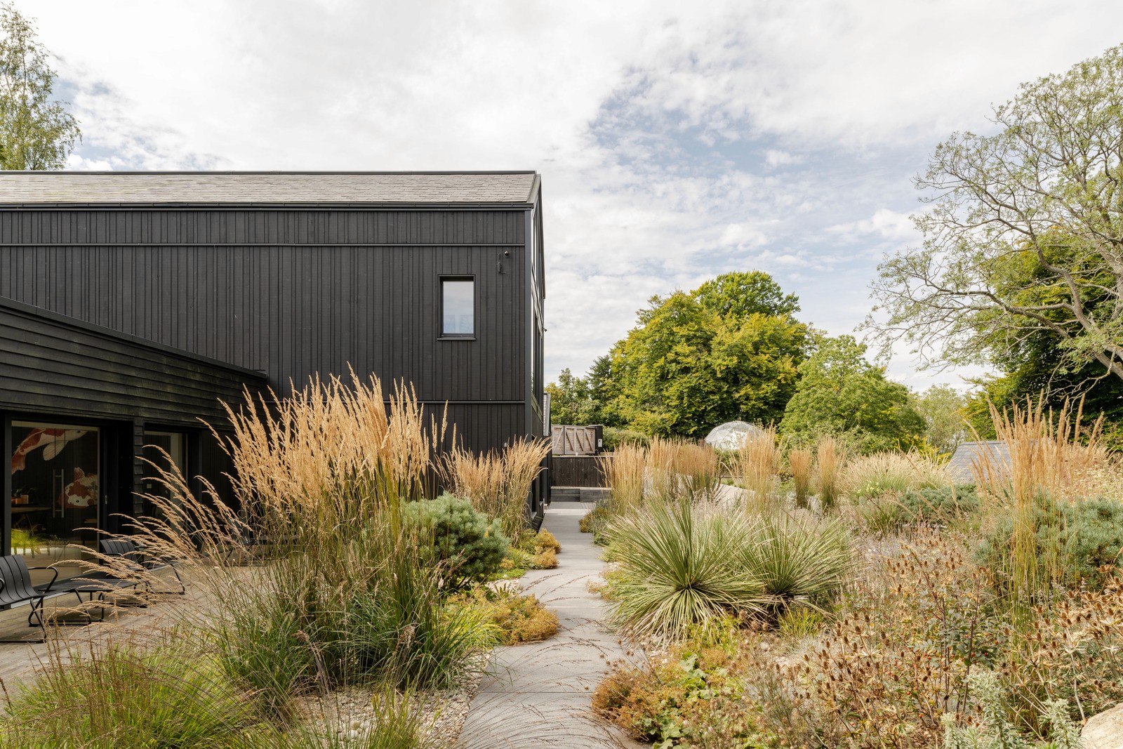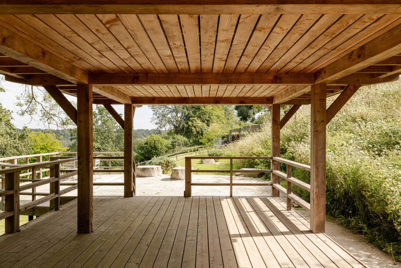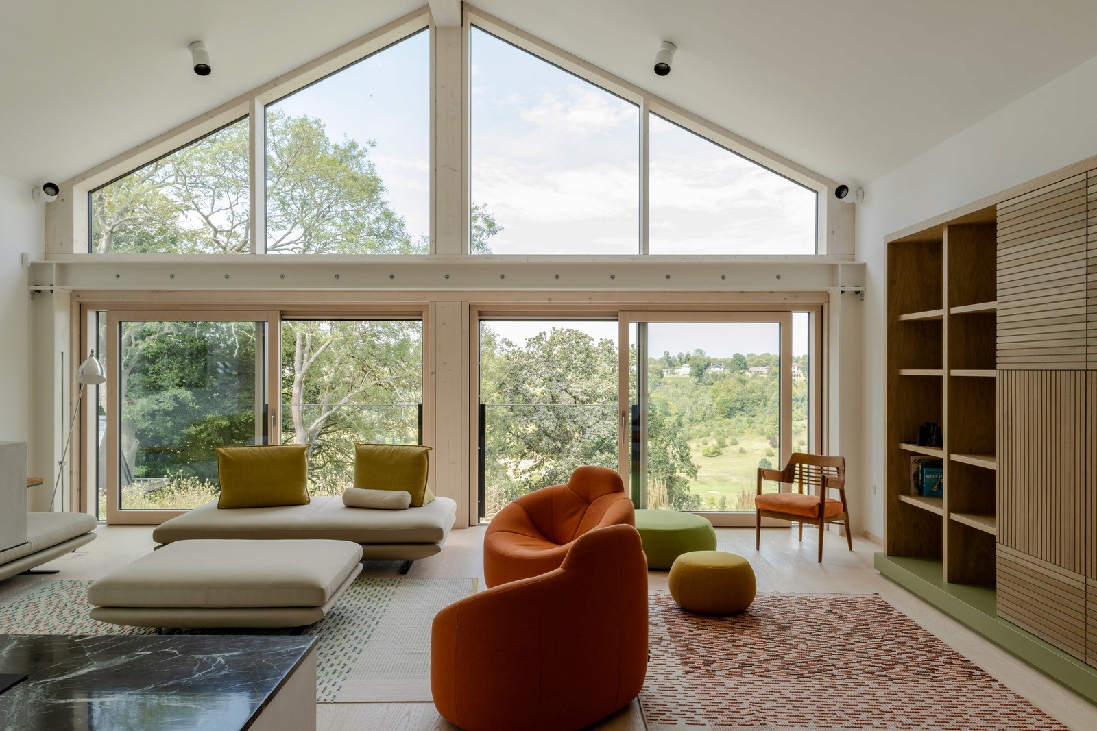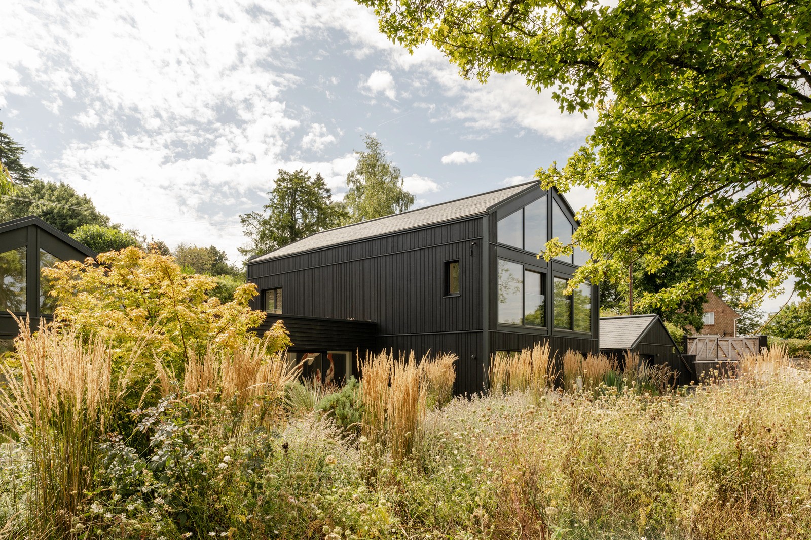 This central open space is shaped in response to the mature gum trees dispersed across the site, enabling the architecture to sit within — rather than over — the existing landscape. A softly curved roofline further mediates this relationship, bending around the established trees and rising and falling in concert with the slope of the land.